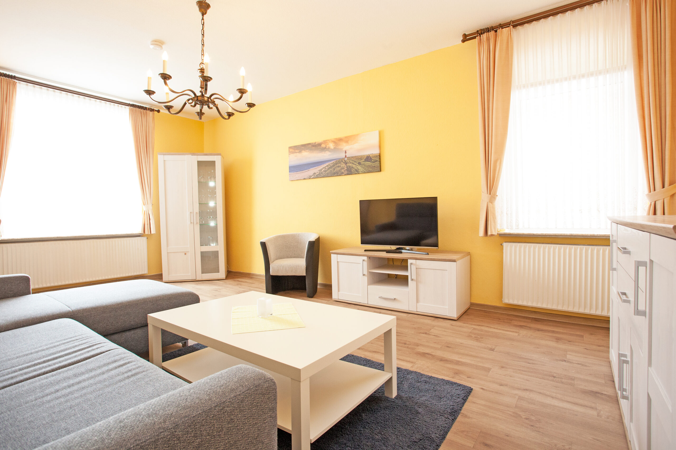 1 großes Wohnzimmer mit Schlafcouch 140×200 und Essplatz